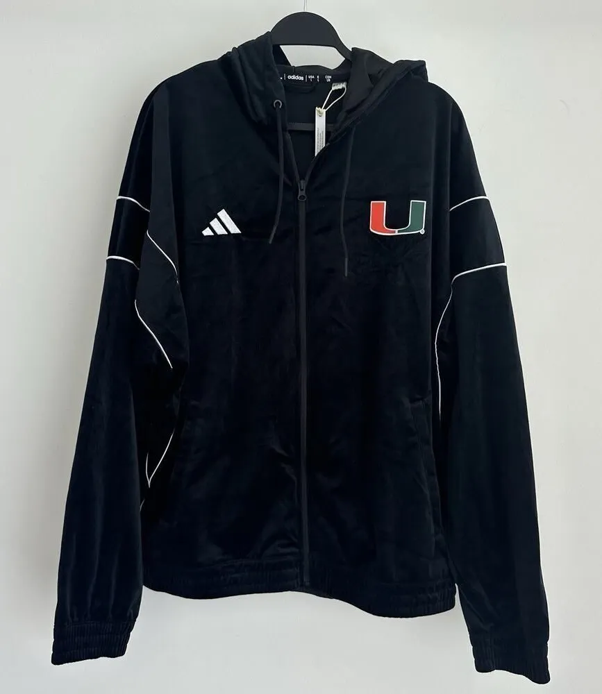 Miami Hurricanes Adidas Jacket Womens Large Black Velour Patch Zip Hoodie UM Black full zip hoodie... Show more
