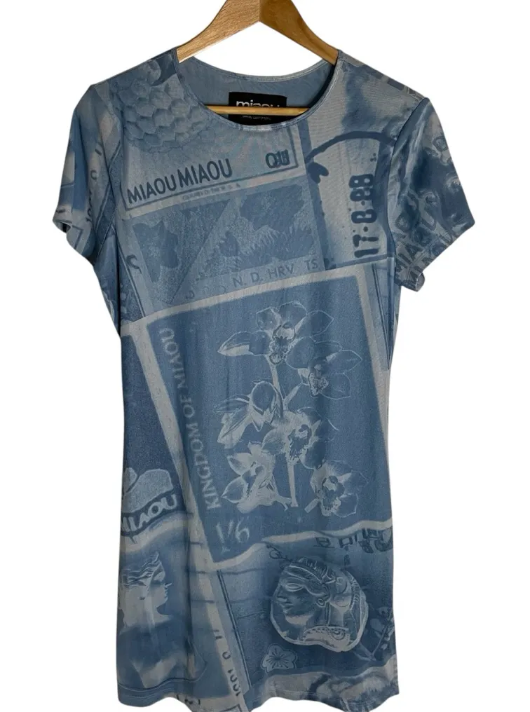 Light blue mini dress by Urban Outfitters. Features a soft, airy design. Abstract stamp graphics to... Show more