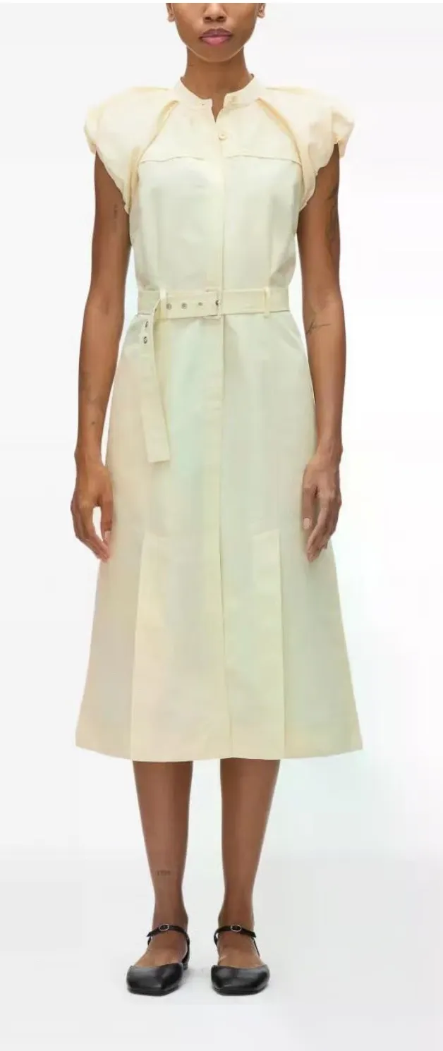 In excellent condition other than under arms where it looks makeup/tanner stains rather than sweat. Hardly noticeable though. A chic and sophisticated belted midi dress, perfect for adding a touch of elegance to your wardrobe. This dress features a classic collared neckline and a flattering sleeveless design, making it ideal for warmer weather. The included belt cinches at the waist, creating a defined silhouette and enhancing the overall shape. The dress has a front zipper closure and a midi length, offering a versatile and stylish look. This dress is perfect for a business casual setting, a daytime event, or a sophisticated brunch. Ask for measurements!