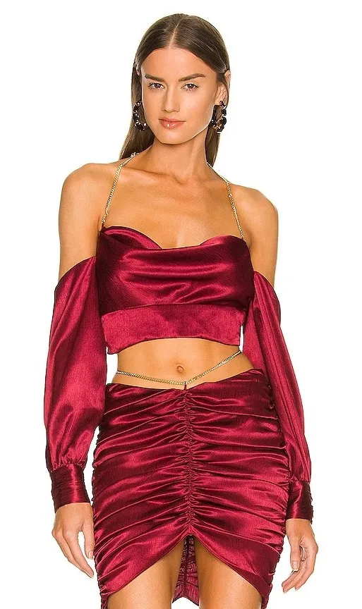 100% poly Made in China Dry clean only Hidden side zipper closure Gold-tone chain halterneck with lobster clasp closure Buttoned cuffs Ruched satin fabric Item not sold as a set Revolve Style No. MELR-WS100 Manufacturer Style No. MCS162 F21 Will fit and XS/S best based on measurements, but all tags were removed from garment. Condition: Fair - there is a tear on one sleeve. You could remove the sleeves entirely or repair it. Both pieces are also missing all tags. Sizing is approximate based on measurements. Approx. Measurements: Top: 15.5" pit to pit 8" length shoulder to bottom hem Skirt: waist: 14.5" flat across length: 14" shortest, 19" longest cocktail, going out, party, night out, trendy, holidays, upscale, girls night, new years, nye, birthday, bridal party, date night, dinner, Vegas, vacation, boho, preppy, romantic, whimsical, artsy, winter, Christmas, formal thank you for your interest! please let me know if you have any questions.