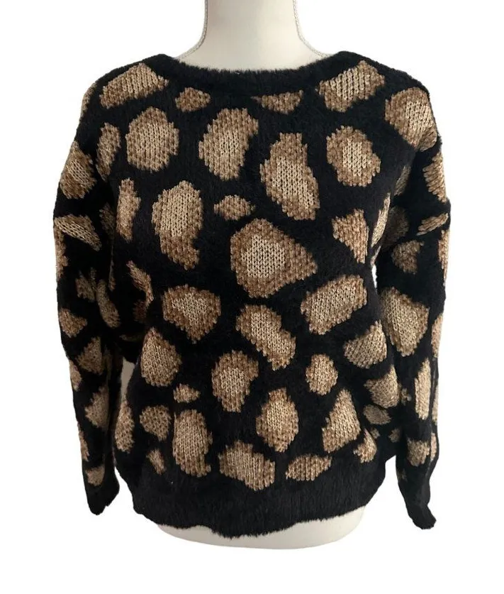 Unleash your wild side with the MICHAEL KORS Animal Print Dark Camel Sweater. This size small, micro... Show more