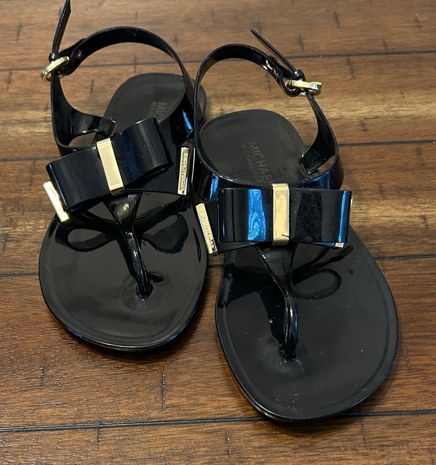 Chic and classic Michael Kors black jelly sandals featuring a secure ankle strap and the signature g... Show more