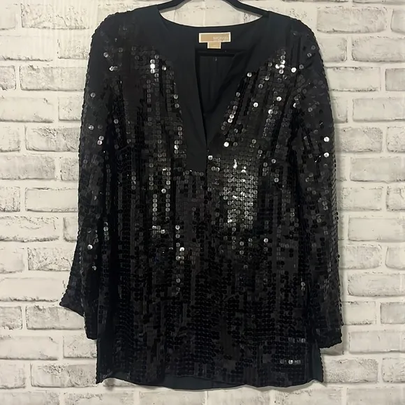 Michael Kors Black Sequins Long Sleeve Shirt Like new! Nice for going out or spice up a casual ou... Show more