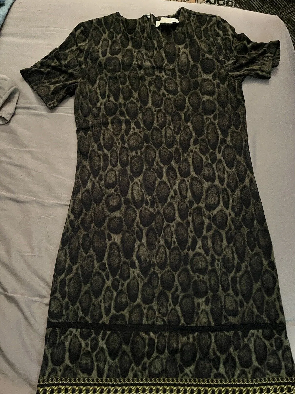 This Michael Kors shift dress features a striking cobra snakeskin print in shades of brown and black... Show more