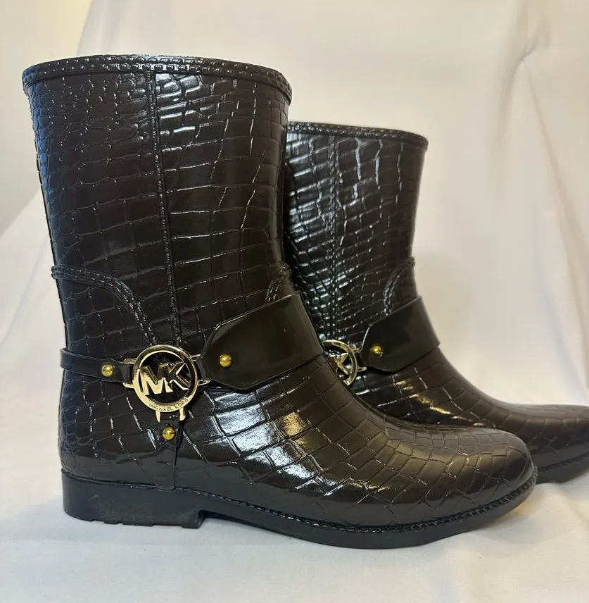 Elegant croc-embossed boots with gold-tone MK logo. Sleek and stylish design. Michael Kors Croc Fult... Show more