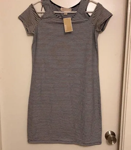 MICHAEL KORS Dress Women’s Size XS MK Coke Shoulder Short Sleeve Striped Dress Black - $36 New With Tags - From Magdalene