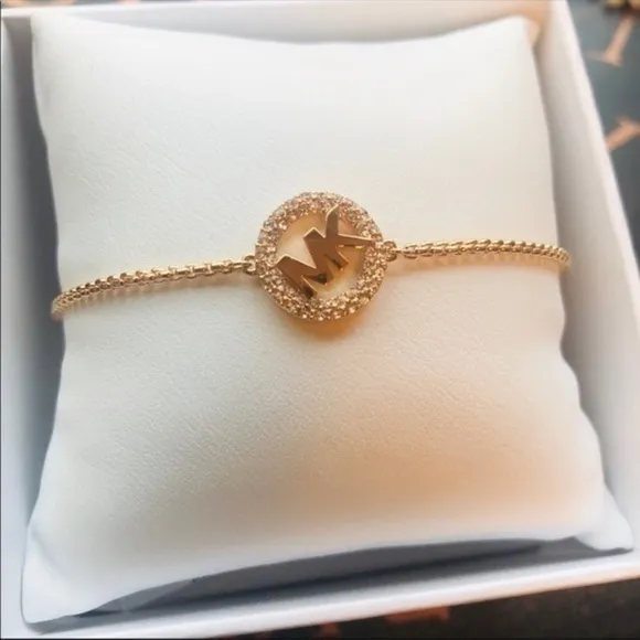 Add a touch of iconic MK shine to your look with this Michael Kors Gold Logo Slider Bracelet, brand... Show more