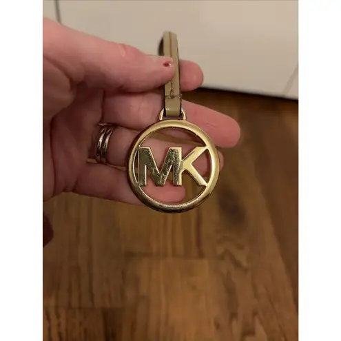 The Michael Kors Gold MK Logo Bag Charm Fob is a luxurious keychain accessory that features a detach... Show more