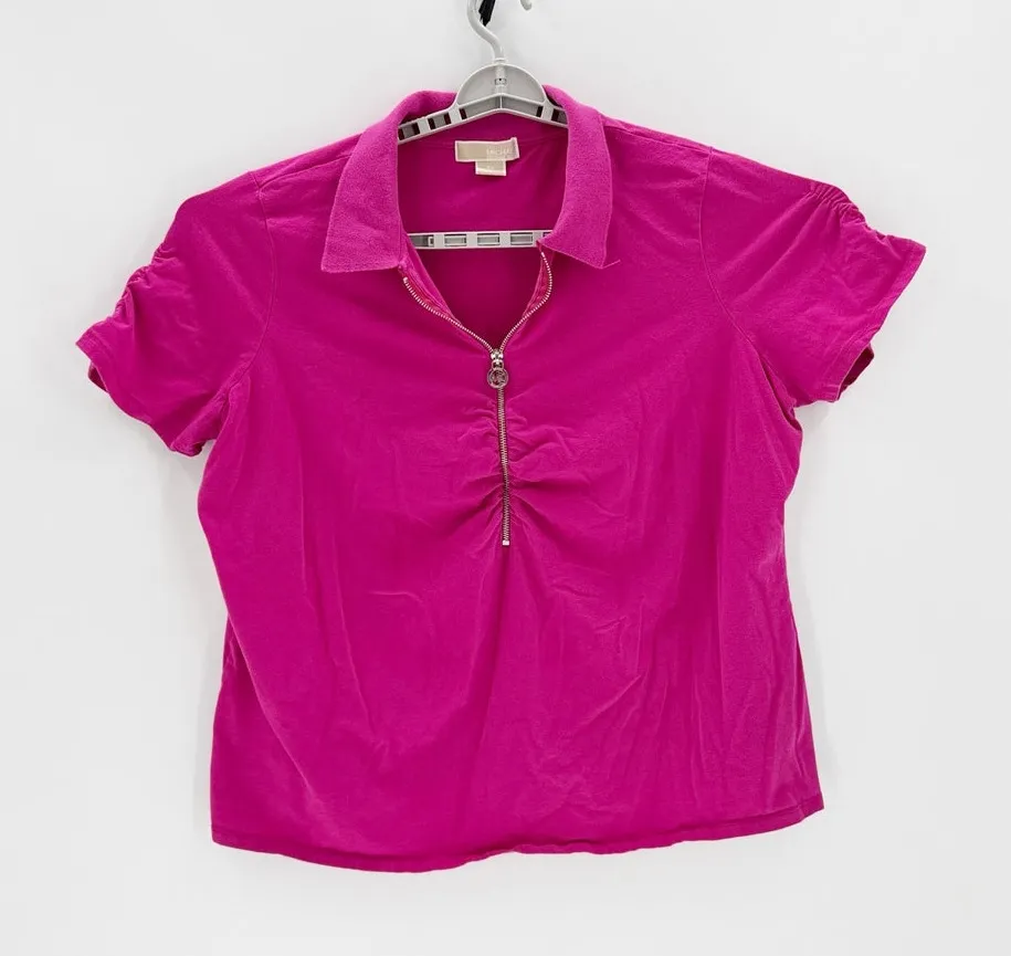 Michael Kors half-zip polo shirt bright pink size 3X ruched bust silver zipper - $28 - From Krystal