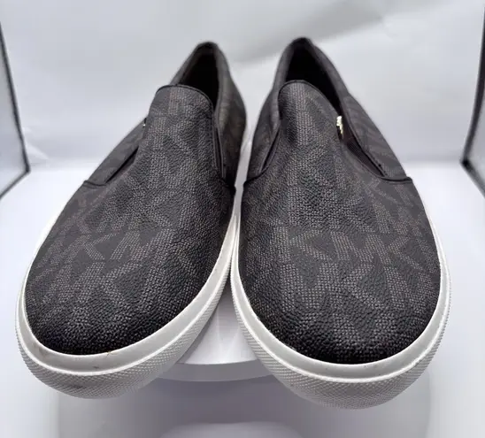The Michael Kors Keaton MK Signature Logo Flat Slip-On Brown Sneakers in women's size 8M are a styli... Show more