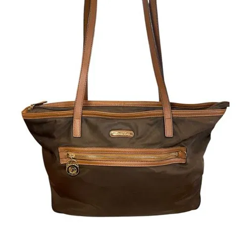 Michael Kors Kempton Large East West Tote Bag Brown Nylon & Saffiano Leather. Beautiful preppy tote... Show more