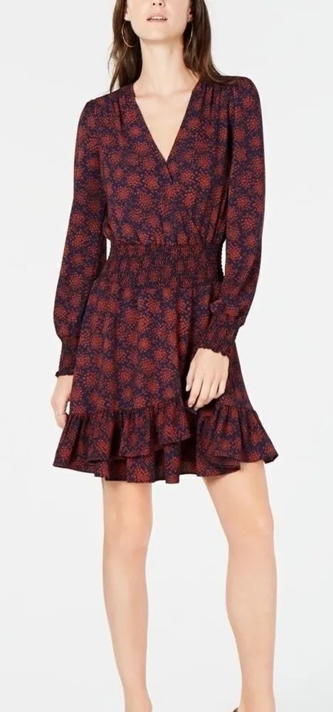 Michael Kors Long Sleeve Red Navy Blue Floral Mini Fit Flare Dress Sz Large Great, pre owned condit... Show more