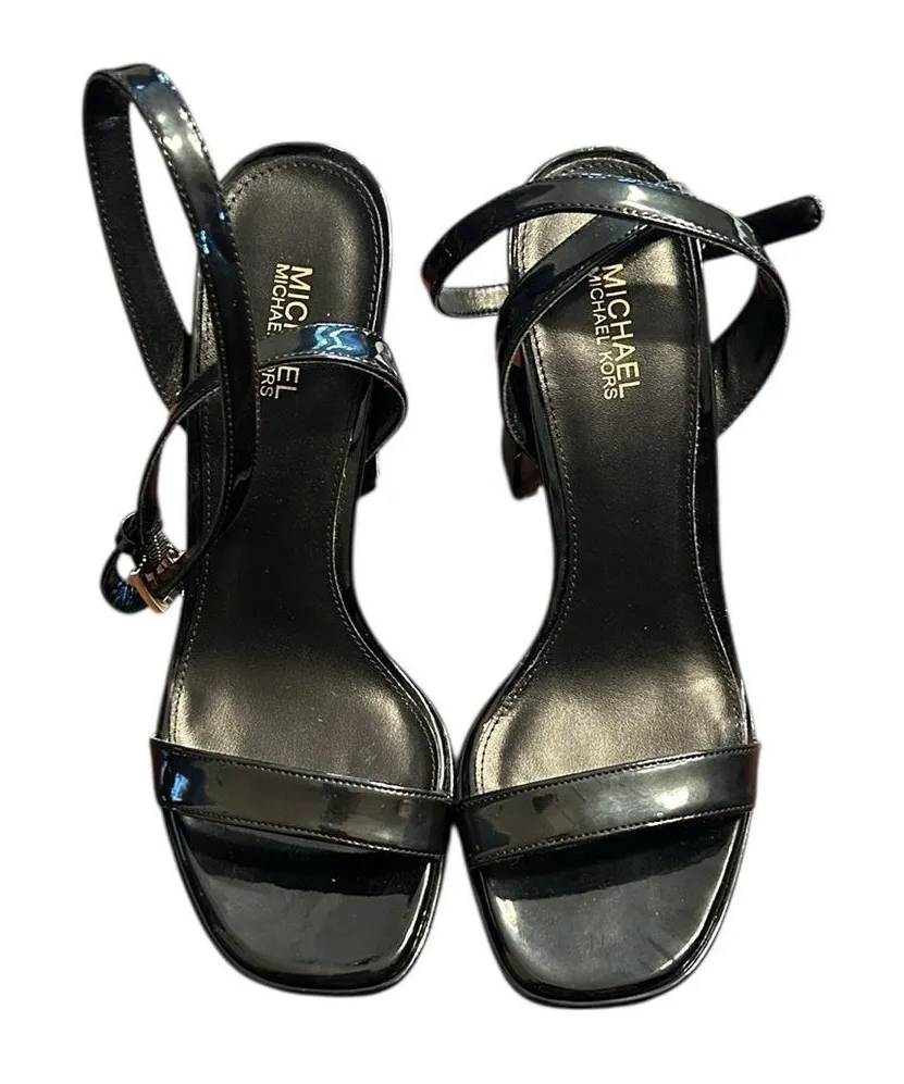 Michael Kors Black Patent Leather Strappy Block Heel Sandals,Ankle Strap closure,NWOB