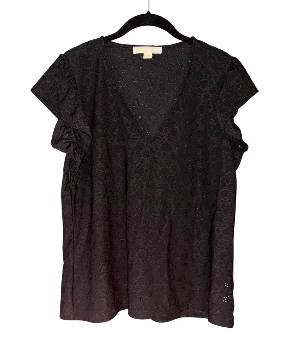 Elevate your everyday style with this chic Michael Kors blouse. This black eyelet top features a fla... Show more