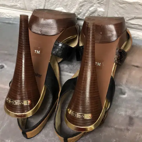 Michael Kors Niki Cross Strap Brown/Tan/Nat Snakeskin Leather Platform Heel sz 7 Brown - $36 - From Diana