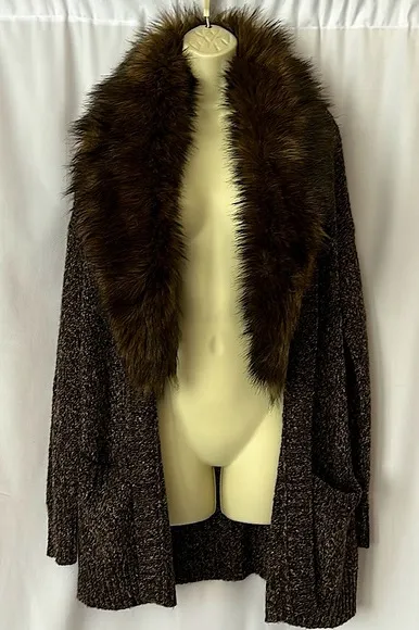 Beautiful NWT Michael Kors Brown Long Sleeve Fur Trimmed Collar Cardigan Sweater. Size S. Beautiful... Show more