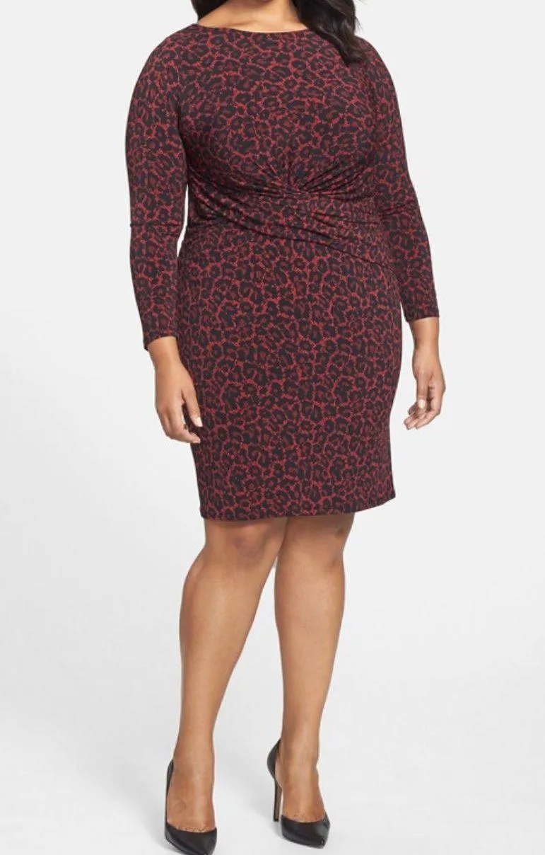 Michael Michael Kors plus size ruched long sleeve dress in size 2X. Features red and black abstract... Show more