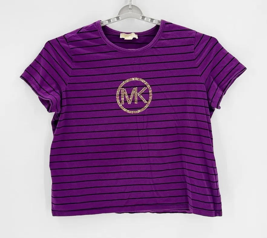 Michael Kors purple black gold studded logo cotton jersey T-shirt size 3X - $32 - From Krystal