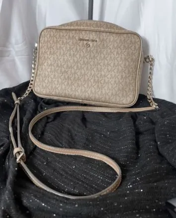 This is a super cute MK cross body purse. No wear seen on the outside, wasn't used much. Inside a fe... Show more