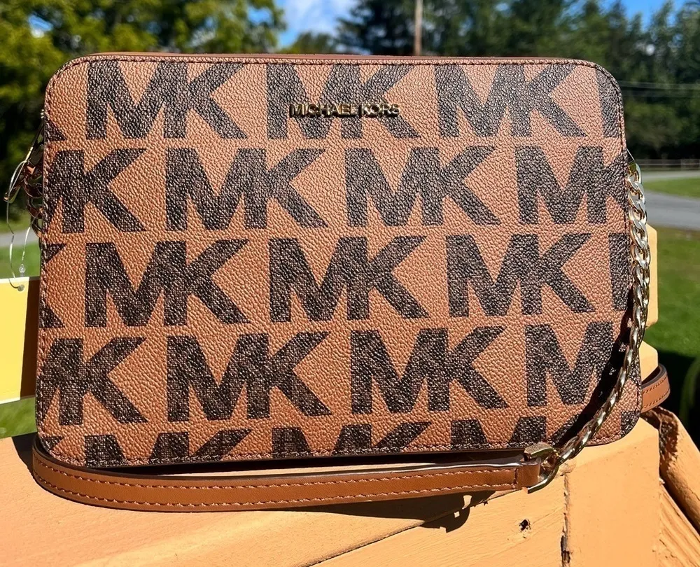 Classic and versatile Michael Kors East West crossbody bag crafted in the iconic MK signature logo p... Show more
