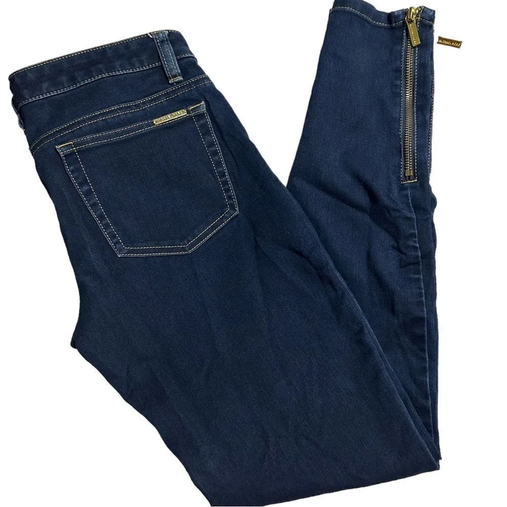 Michael Kors Skinny Jeans •Gold Zipper @ Ankle Leg Hem •Gold Decal on Rear Pocket •Dark Wash •Stretc... Show more
