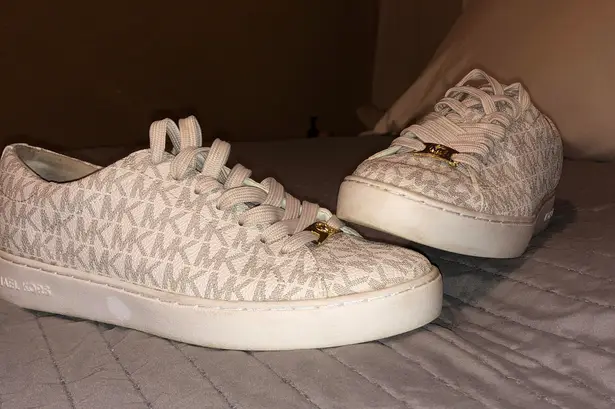 Size 7 Michael Kors Sneakers. In great condition! Only worn two times!! A gold and cream color. Look... Show more