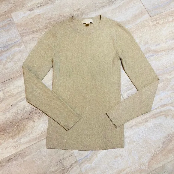 Michael Kors Tan & Gold Glittery Ribbed Long Sleeve Sweater Shirt ❄️ Size small So soft & cozy! Per... Show more