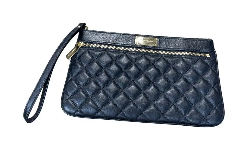 The Michael Kors quilted leather wristlet clutch exudes sophistication with its elegant design and g... Show more