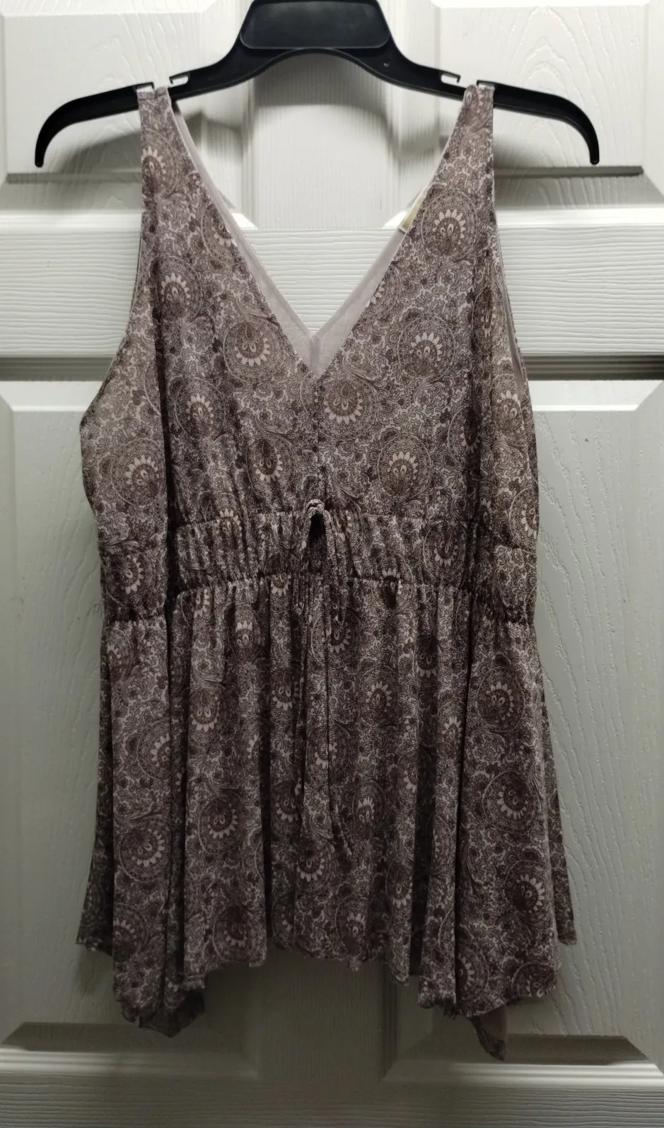 Michael Kors Womens Size Large Brown Paisley Floral V-Neck Waist Tie Sleeveless Tank Blouse Top Exc... Show more