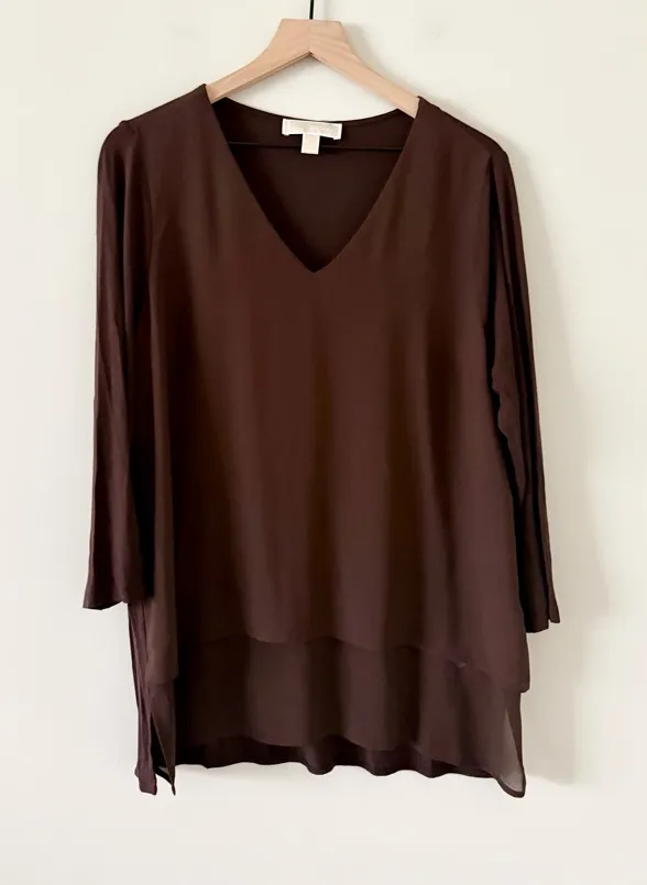 Excellent condition Size L Stylish chocolate blouse with a flattering V-neck. Ideal for versatile... Show more
