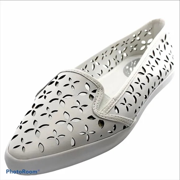 In excellent used condition. Slip on MICHAEL Michael Kors' Olive flats with a floral perforated de... Show more