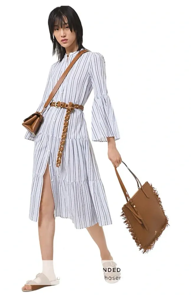 Michael Michael Kors Striped White Blue 100% Cotton Gauze Tiered Midi Dress Large New with tag Keep... Show more