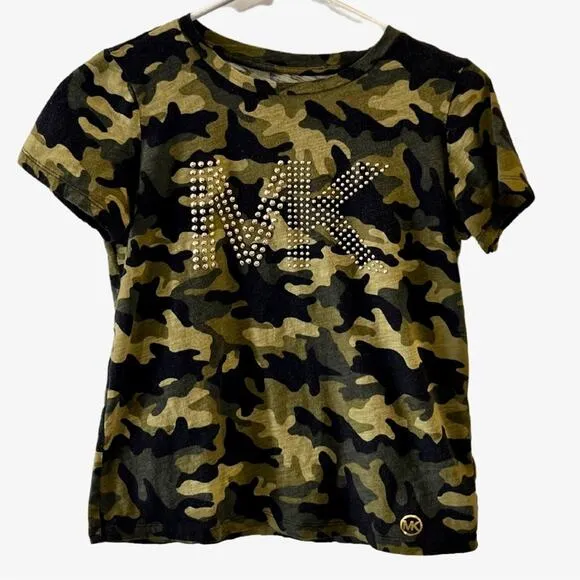 Camouflage oversized short-sleeved tee with gold studs by Michael Michael Kors. In good used conditi... Show more