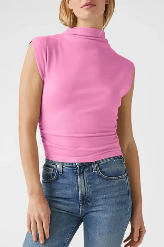 Michael Stars Amara Ribbed Power Shoulder Mock Neck Tee | Bubblegum Pink | M Size M - $32 - From Kelsey