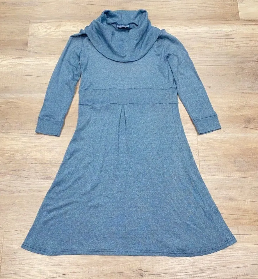 Michael Stars super stretchy cowl neck long sleeve dress. Side ruching, pretty gray blue color, shim... Show more