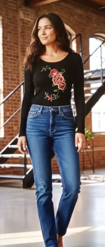Michelle Nicole Vintage Black Top with Rose Embroidery Artsy Sequin Sz M Size M - $28 - From Beatriz