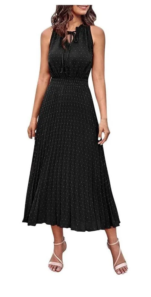 ✨Midi Casual Swiss Dot Ruffle Sleeveless Beach Sun Dress Size: Large Fabric type Dresses for women... Show more