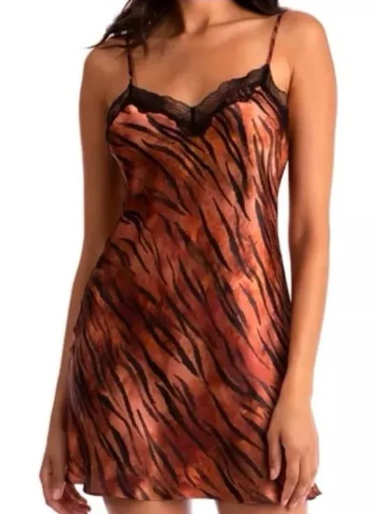 Midnight Bakeries tiger print satin lace detail chemise slip dress Orange Size M - $50 New With Tags - From Blue