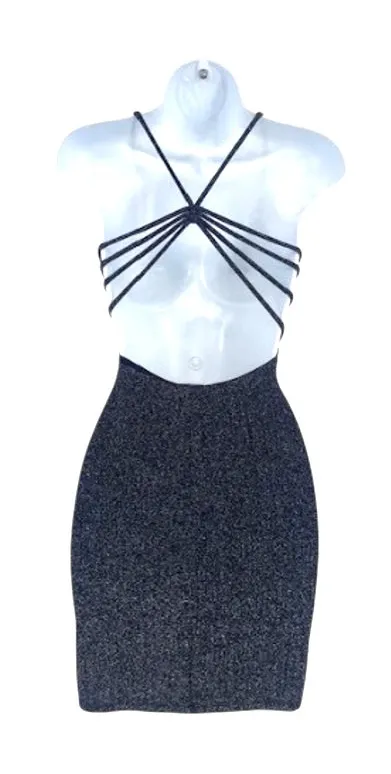 Navy Midnight Doll Sparkly Ruched Bodycon Mini Dress Strappy Back New Year's Eve Clubwear Y2K Pullover, Strappy back, all over silver shimmer Open back Pre-owned condition, please see photos, mild pilling on sides Size 0 56% Nylon 35% Metal 9% Metal Lining 100% Polyester Approximate measurements in inches: Pit to pit: 15 - 19.5 Shoulder to hem: 32 clubwear, party dress, holiday glam, New Year’s Eve dress, sparkly mini dress, bodycon, ruched front, open back, strappy back, metallic shimmer, Y2K glam, night out dress, cocktail dress, sexy dress, club outfit, homecoming dress, girls night out, festival glam