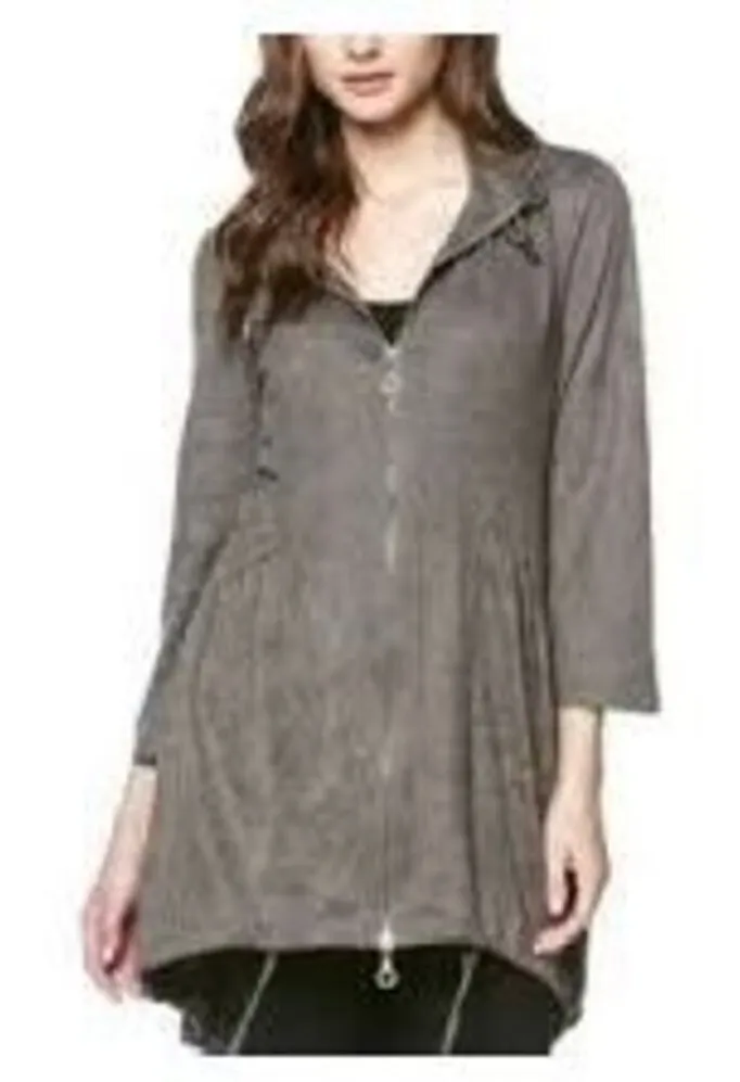 Miilla Womens Jacket Dress Taupe Faux Suede Anorak Drawstring Hoodie Large Gray - $25 - From Nicole