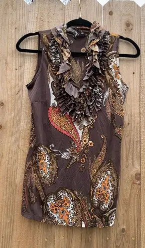 Milano floral paisley top size small. Preowned good condition. Material has stretch to it, 95% polyester 5% spandex. 19 in pit to pit, 25 in top to bottom. Ships in 2/4 days đź’‹