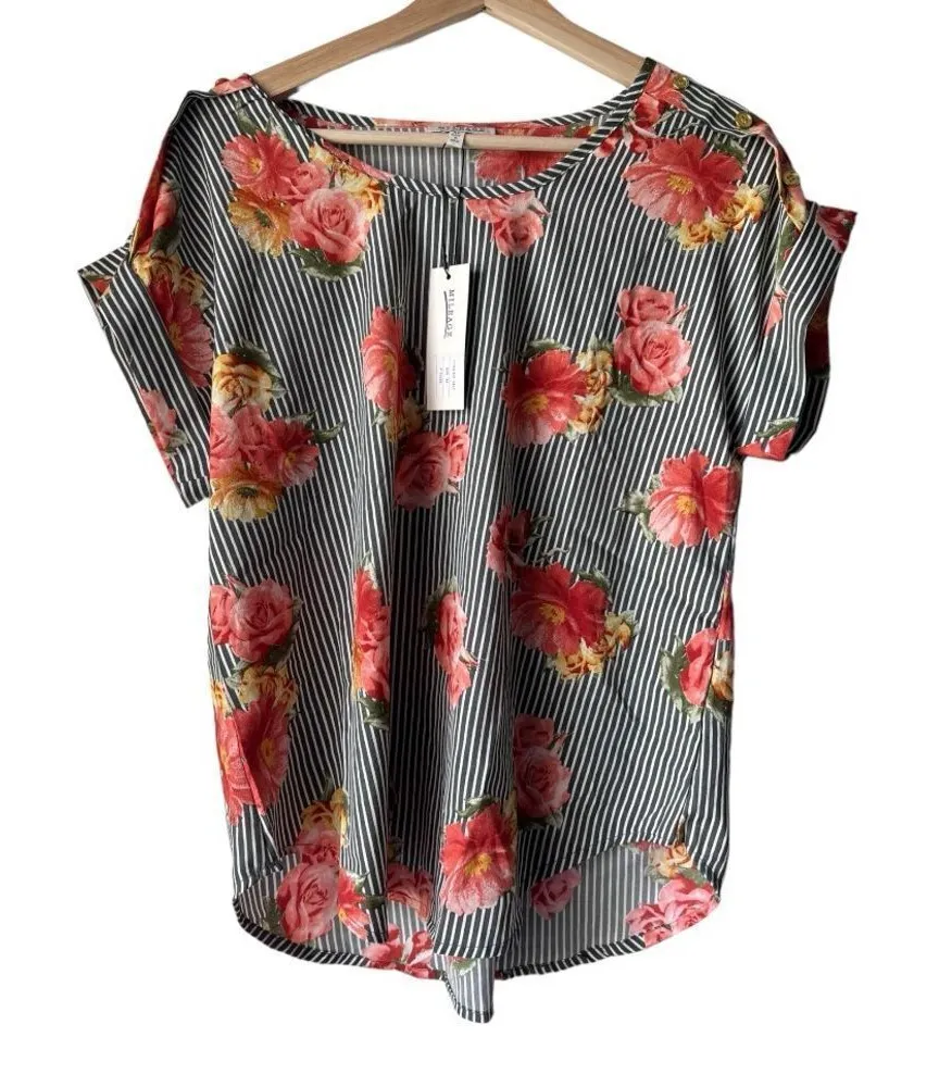 Women’s Blouse floral rose tropical light fabric black casual short sleeve XL. Pink - $35 New With Tags - From Yosanny