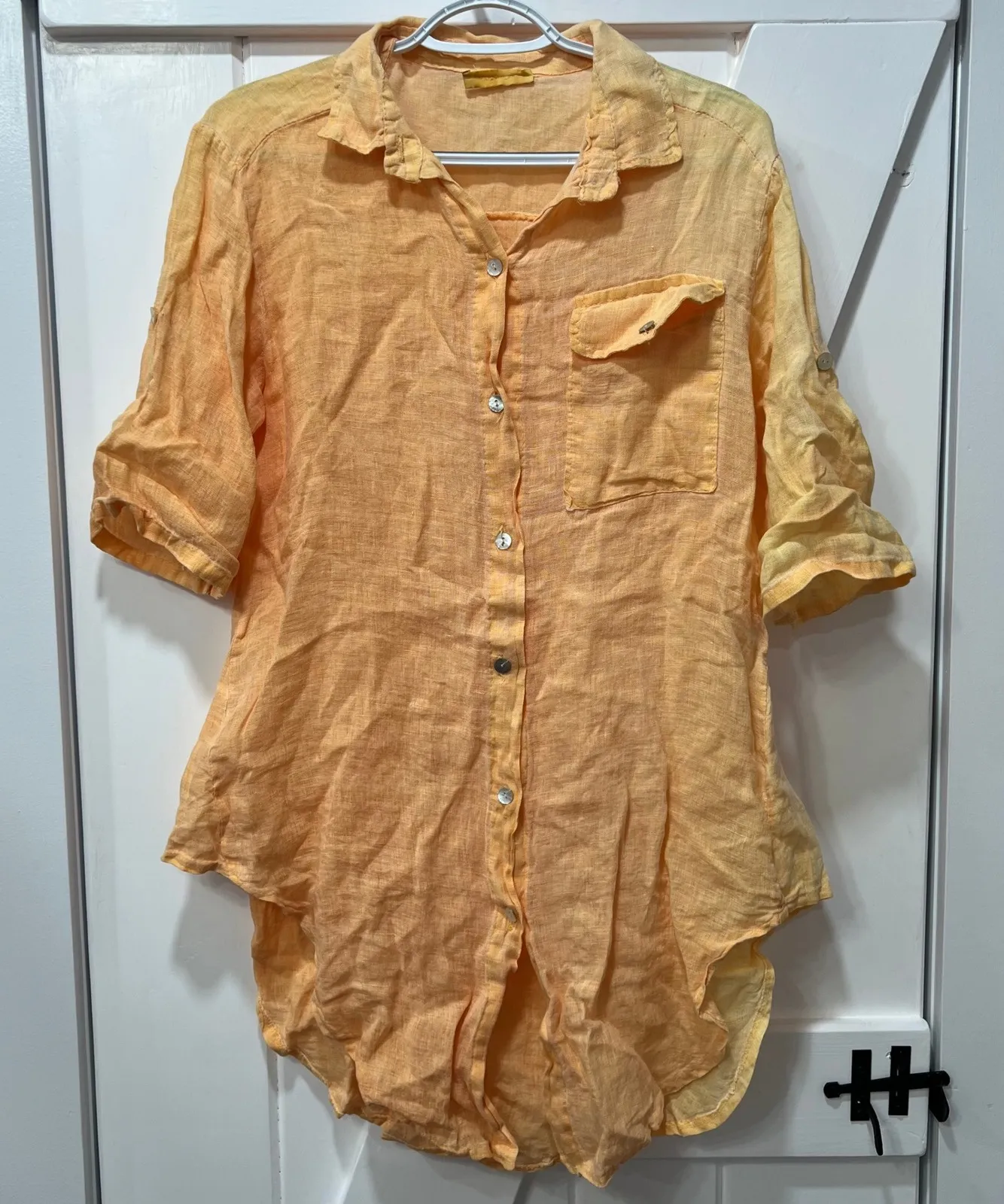 Milio Milano Womens Tunic Top Small Linen Italy Orange Gauzy Tab Henley Boho - $24 - From Kelsey