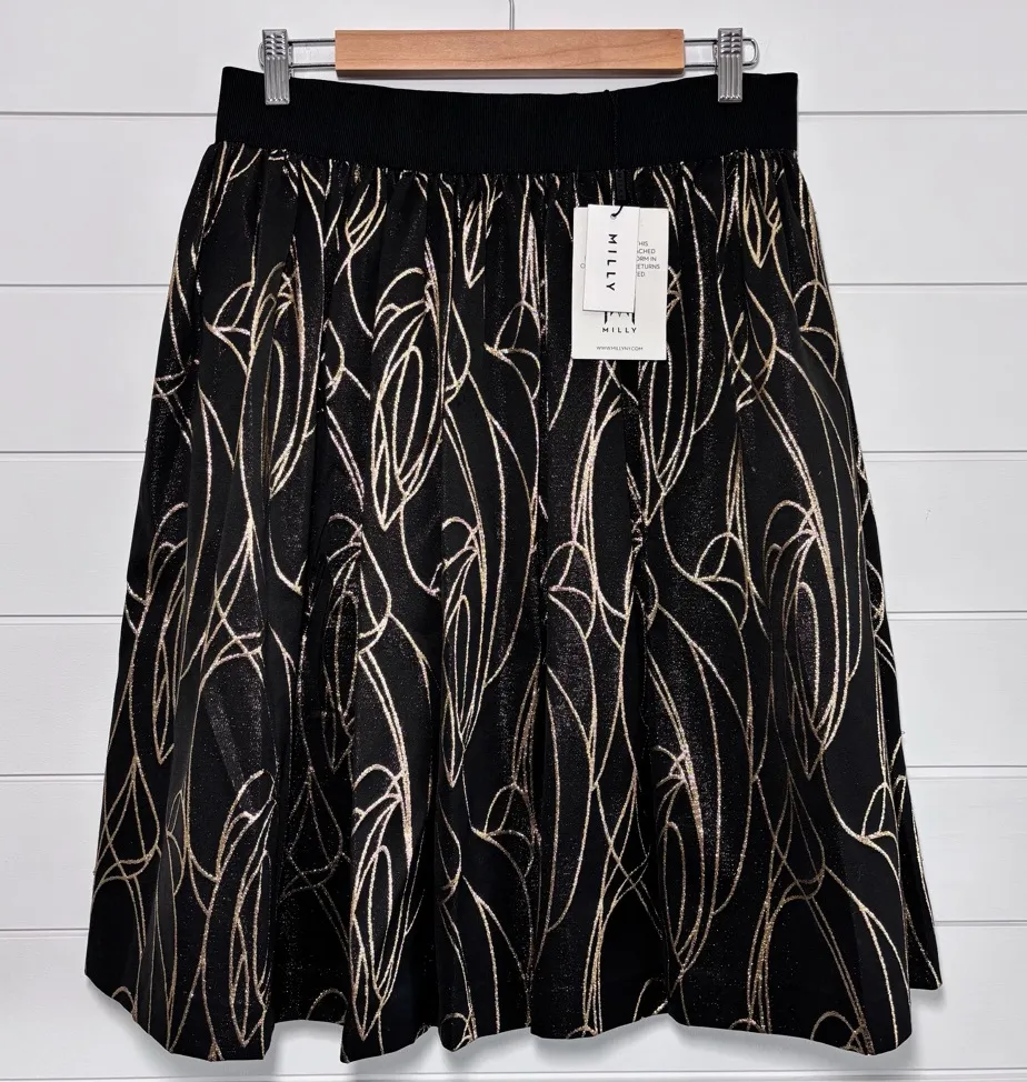Milly New York Black And Metallic Gold Glitter Swirl Flare Skirt Size 12‎ - $71 New With Tags - From Anna