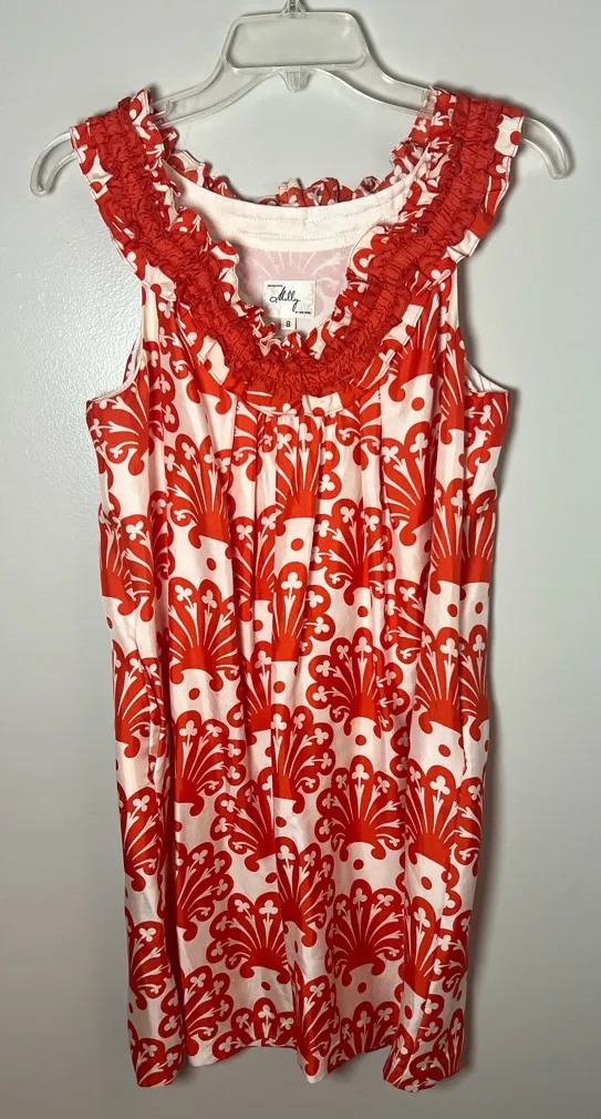Milly Of New York Vintage Silk Fan Print Orange Ivory Ruffle Shift Dress Sz 8 - $38 - From LeeAnna