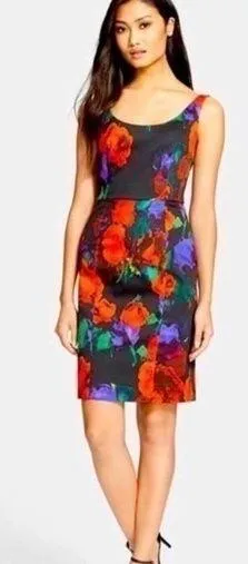 Milly Size 12 Sleeveless Sheath Dress Colorful Watercolor Floral Black Red Career Fully lined Scoop... Show more