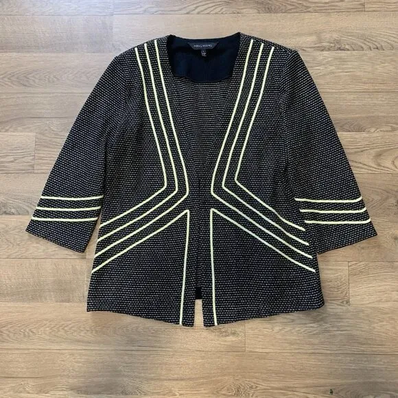 Ming Wang Black & Yellow Accents Jacket cardigan 3/4 sleeve size L E5 Size L - $48 - From Eva