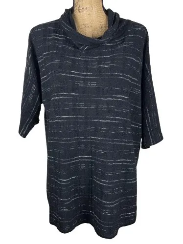 MING WANG Cowl Neck Short Sleeve Sweater Black White Slouchy Lagenlook Size S/M Condition: Excellent used condition! Type: Sweater Department: Women Style: Tunic Material: Rayon Blend, Rayon, Polyester, Viscose Neckline: Cowl Neck Sleeve Length: Short Sleeve Sleeve Type: Dolman Sleeve Pattern: Striped Theme: Art, City Features: Easy Care, Stretch Fit: Relaxed Measurements (laid flat): - Bust: 23" - Length: 26" Keywords: casual, contemporary, chic, knit top, slouchy fit, oversized, lagenlook, minimalist, artsy Thank you so much for shopping with me, and please let me know if you have any questions! Offers are always welcome. Bundle to save.