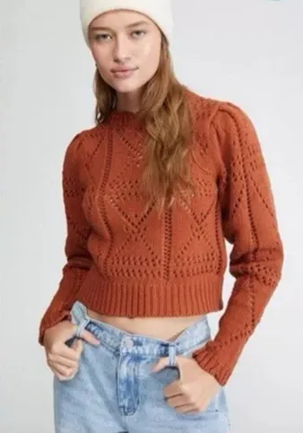 MINKPINK‎ Cara Crochet Sweater Crop Women Size Small Pointelle Brown Cable Knit - $22 - From Wild