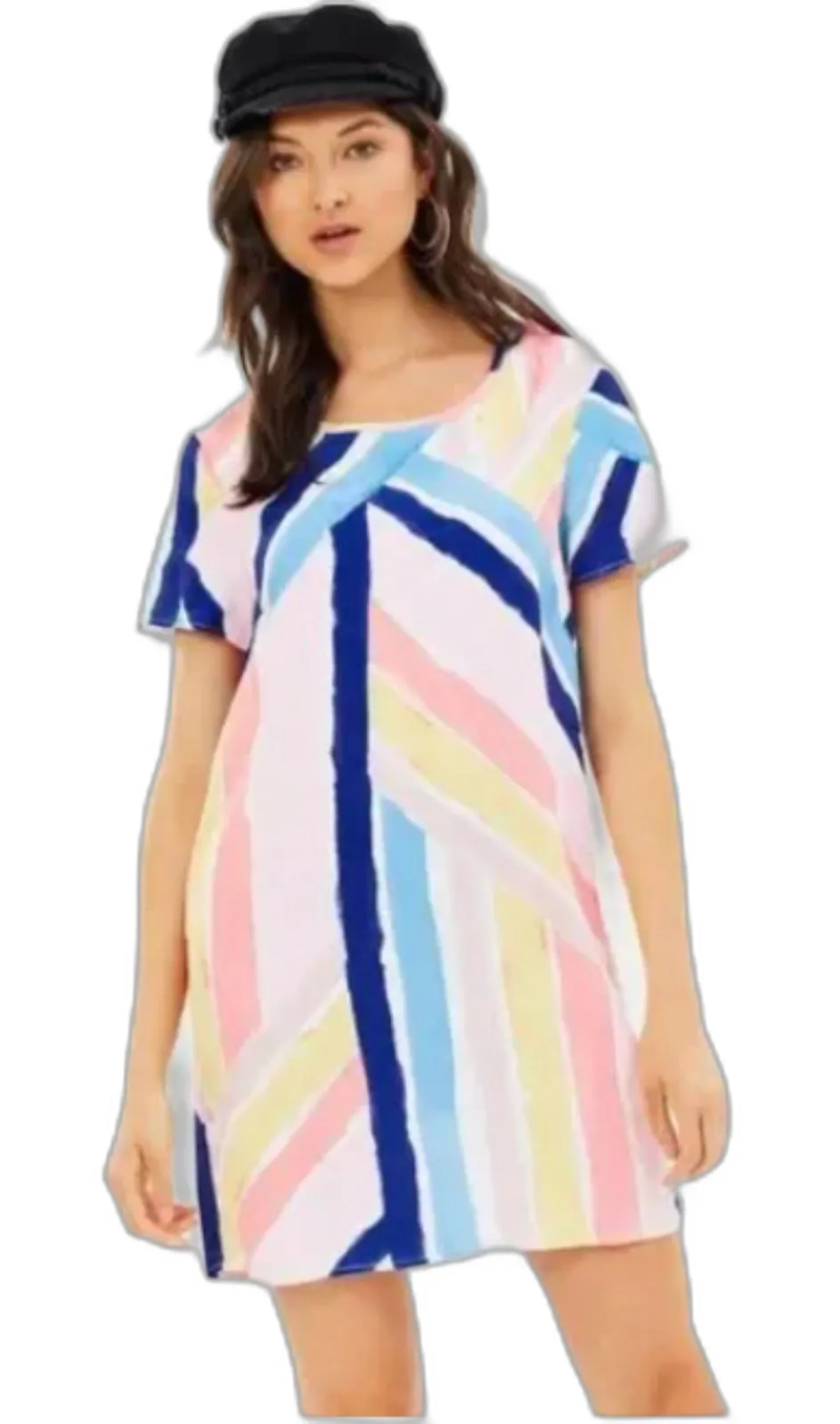 Minkpink Mara Tee Shirt Dress Multicolor Pastel Stripe Mini Size Small Gently used condition with n... Show more